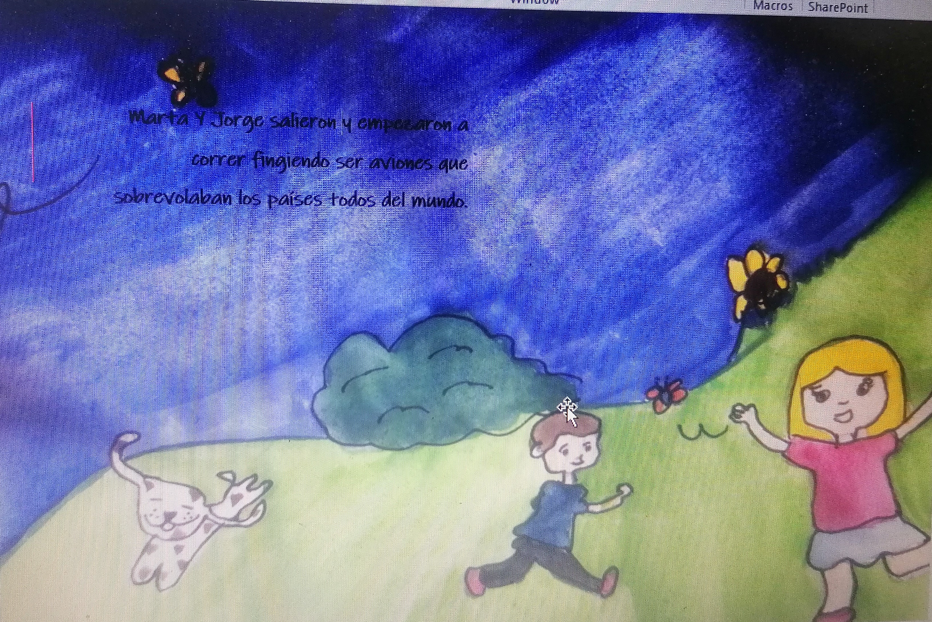 The examples provided are children’s books created by students. These children’s books were to be between 500-1000 words in Spanish and accompanyed by a critical commentary in Spanish of 500-1000 words discussing the process of creation, editing, characters, and influences.